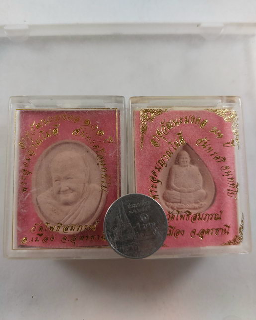" พระผงรูปเหมือน หลวงปู่จันทร์ศรี จนฺททีโป วัดโพธิสมภรณ์ จ.อุดรธานี หลัง โรยเกศา รุ่น 101 ปี สวยครับ 2 องค์ 2 พิมพ์ครับ "