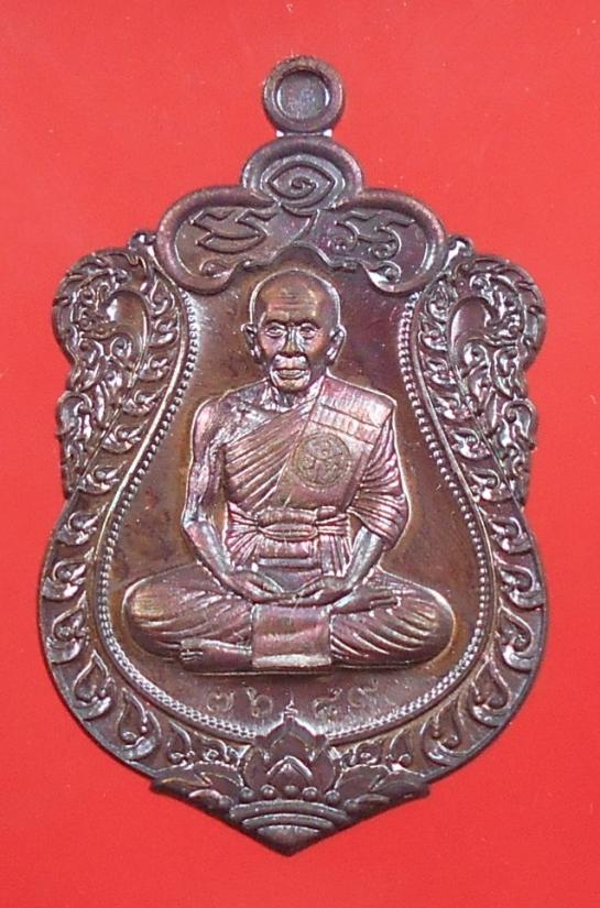 เหรียญเสมาหลวงพ่อจอย รุ่นเจริญพร ปี 2559 เนื้อทองแดงรมดำ หมายเลข7689 พร้อมกล่องเดิม