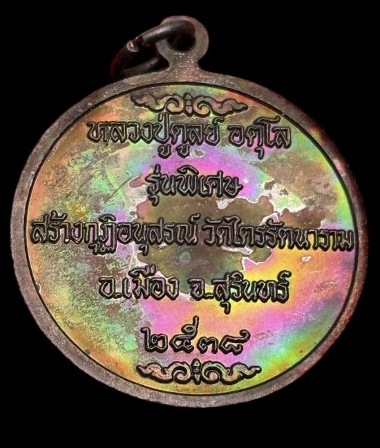 เหรียญหลวงปู่ดุลย์ รุ่นพิเศษสร้างกุฎิอนุสรณ์วัดไตรรัตนาราม อำเภอเมือง จังหวัดสุรินทร์ปีพ.ศ. 2538 เนื้อทองแดงผิวรุ้ง