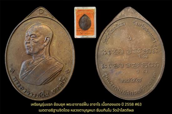 เหรียญรุ่นแรก ย้อนยุค พระอาจารย์ฝั้น อาจาโร เนื้อทองแดง ปี 2558 เคาะเดียว