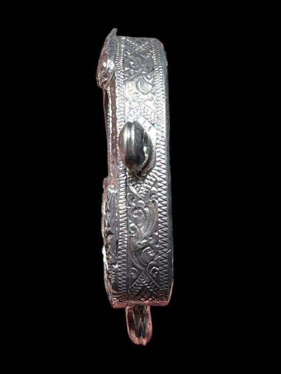 วัดใจ 200 เคาะเดียวแดง ส่งด่วน EMS ทุกรายการ กรอบเงินแท้ (มือสอง) สามห่วง ใส่รูปเหมือน งานขึ้นมือ แกะมือลายสวย ยกซุ้ม มีแผ่นหลัง (ขนาด 2.5 x 1.7 ซม.) สวยๆ ทำใหม่แพงกว่านี้หลายเท่าครับ