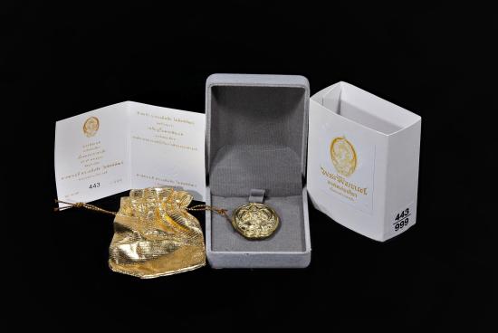 เหรียพระพิฆเนศองค์หล่อเศียร เนื้อทองฝาบาตร พิมพ์เล็ก มี 61 หมายเลข 443
