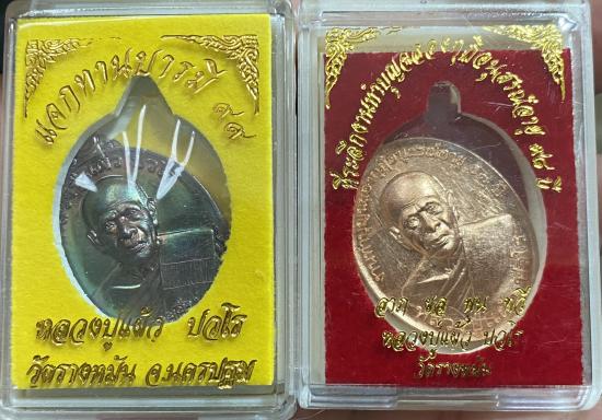 หลวงปู่แผ้ว ปวโร วัดรางหมัน เหรียญรุ่น เเจกทานบารมี๙๙ , รุ่นลาภผลพูนทวี (2 เหรียญเนื้อทองเเดง)
