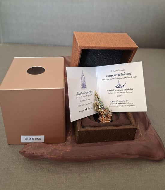 กราบขออนุาตท่านอ.เฉลิมชัย โฆษิตพิพัฒน์ นำเสนอ พระพุทธราชสวัสดิ์มงคล เนื้อนวะโลหะ ผิวรุ้ง หมายเลข ๒๕๙๗๑ อุปกรณ์ครบ ขนาดกว้าง ๒.๒ ซม. ลึก ๑.๙ ซม. สูง ๔.๒ ซม