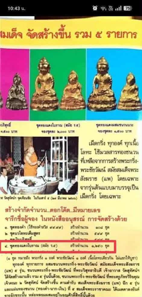 เนื้อทองแดงโบราณจำนวนการสร้าง 1250 ชุด ราคาจองชุดละ 2000 บาท เปิดวัดใจแดง 200.- จบแค่ไหนแค่นั้น
