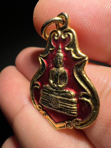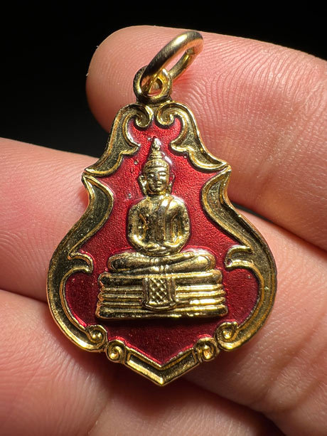 วัดใจ เคาะเดียว เหรียญหลวงพ่อโสธร กะไหลาทอง ลงยาสีแดง หลังยันต์ สวยๆ