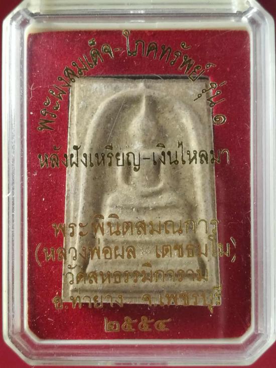 พระผงสมเด็จโภคทรัพย์ รุ่น ๑ หลวงพ่อผล วัดสหธรรมิการาม(วัดหนองแขม) จ.เพชรบุรี ปี ๒๕๕๔ หลังฝังเหรียญตราครุฑ ตอกโค๊ต ตอกเลข ๙๐ พร้อมกล่อง เคาะแรกถึงขั้นต่ำครับ LINE ID : sumsawang