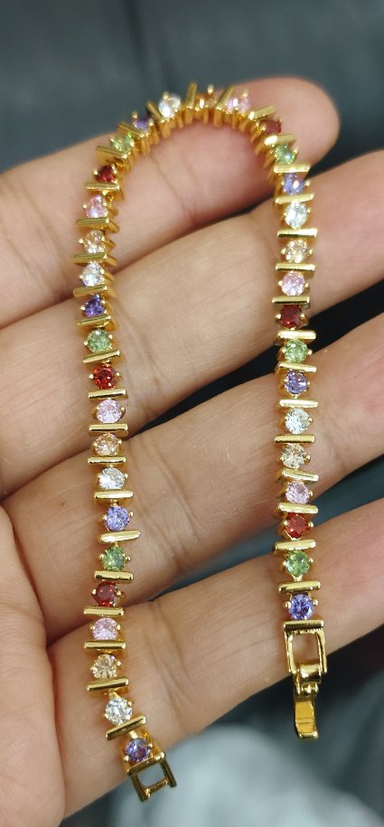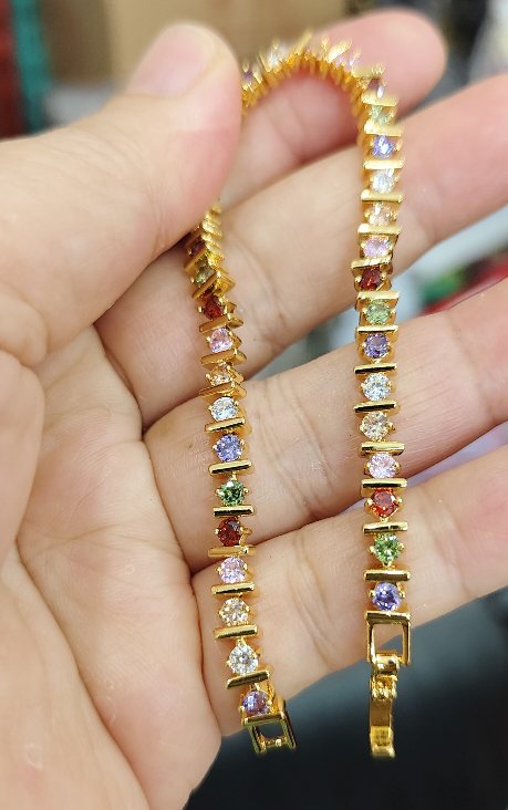 เทขาดทุน+ กำไลแขนปล่อยนพเก้ายาว 7.นิ้ว งานจิวเวลลี่ชุบทองแท้