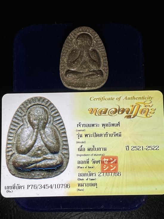 | พระปิดตาข้างรัศมี หลังยันต์ตรีฯ หลวงปู่โต๊ะ ออกวัดศาลาครืน ปี 2521-22 |