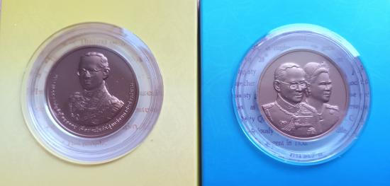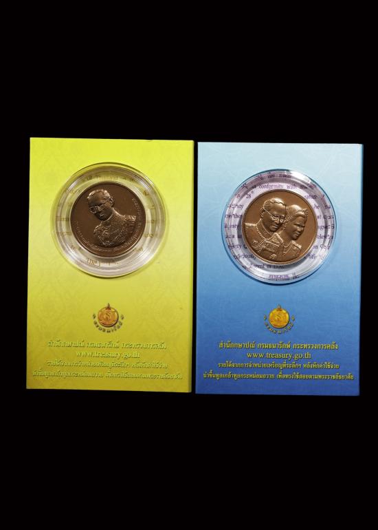 รายละเอียด เหรียญในหลวง-ราชินี ที่ระลึก 60 ปี บรมราชาภิเษก + ราชาภิเษกสมรส ปี2553 ((( 2 เหรียญ แพ็คเดิม )))