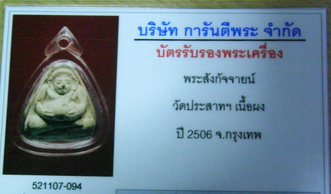 พระสังกัจจายน์ วัดประสาทบุญญาวาส ปี2506+บัตรรับรองการันตีพระ |