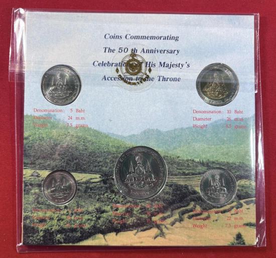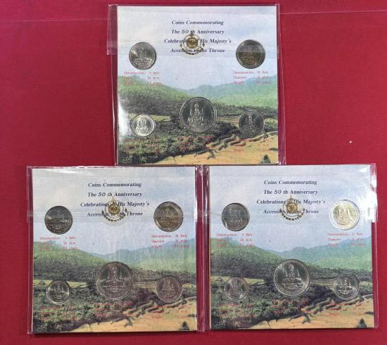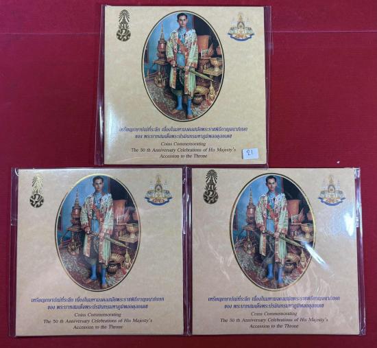 เหรียญกษาปณ์ที่ระลึก เนื่องในมหามงคลสมัยพระราชพิธีกาญจนาภิเษกของ พระบาทสมเด็จพระปรมินทรมหาภูมิพลอดุลยเดช จำนวน 3ชุด สภาพสวยตามรูป |
