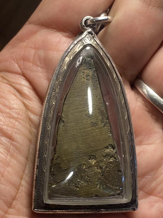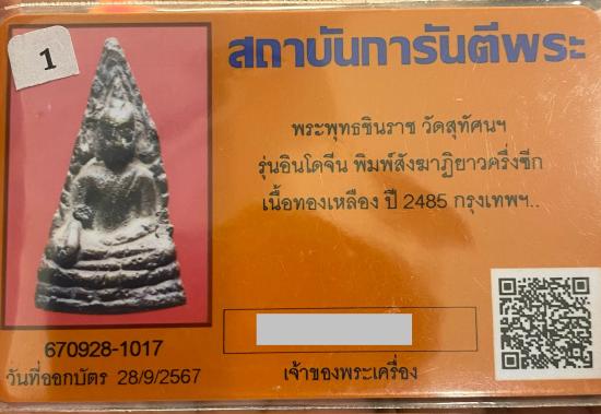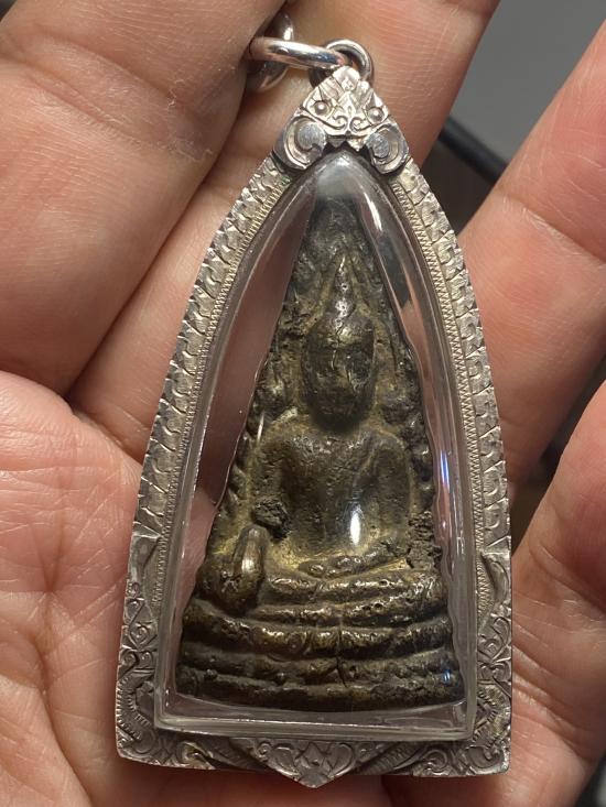 พระพุทธชินราช วัดสุทัศนฯ รุ่นอินโดจีน พิมพ์สัฆาฏิยาวครึ่งซีก เนื้อทองเหลือง ปี2485 เลี่ยมเงินพร้อมใช้ มีบัตรการันตี พิมพ์ครึ่งซีกหายยากในตลาดพระเครื่องซึ่งพบเจอน้อยสวยเดิม