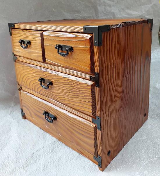 กล่องไม้วินเทจญี่ปุ่น งานฝีมือเก่า 4 ลิ้นชัก สามารถวางพระบูชา 5 นิ้ว ทำจากไม้ซีดาร์เผา