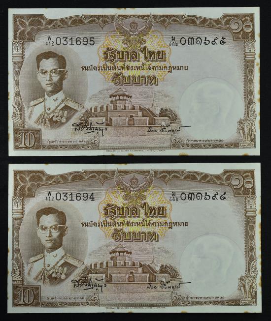 เคาะเดียว ธนบัตรราคา 10 บาท รุ่นโทมัส จำนวนสองใบ หมายเลขเรียงกัน วัดใจ