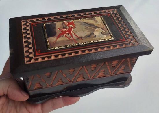กล่องดนตรีไม้วินเทจ Walt Disney Musical Memories จากยุค 90s ขนาด 6 X 3.5 สูง 3.5 นิ้ว งานเก่าน่าสะสม สามารถใส่อุปกรณ์พระเครื่องได้ |
