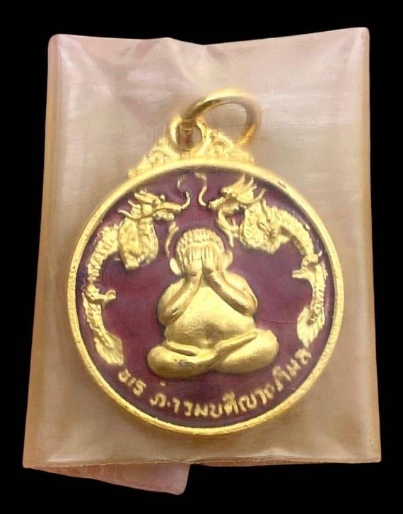 เหรียญปิดตามังกรคู่ กะไหล่ทองลงยาสีแดงออกวัดศาลาครืนปี2521 เหรียญยังอยู่ในซองเดิมๆไม่ได้แกะซีนเดิมๆเลยครับ