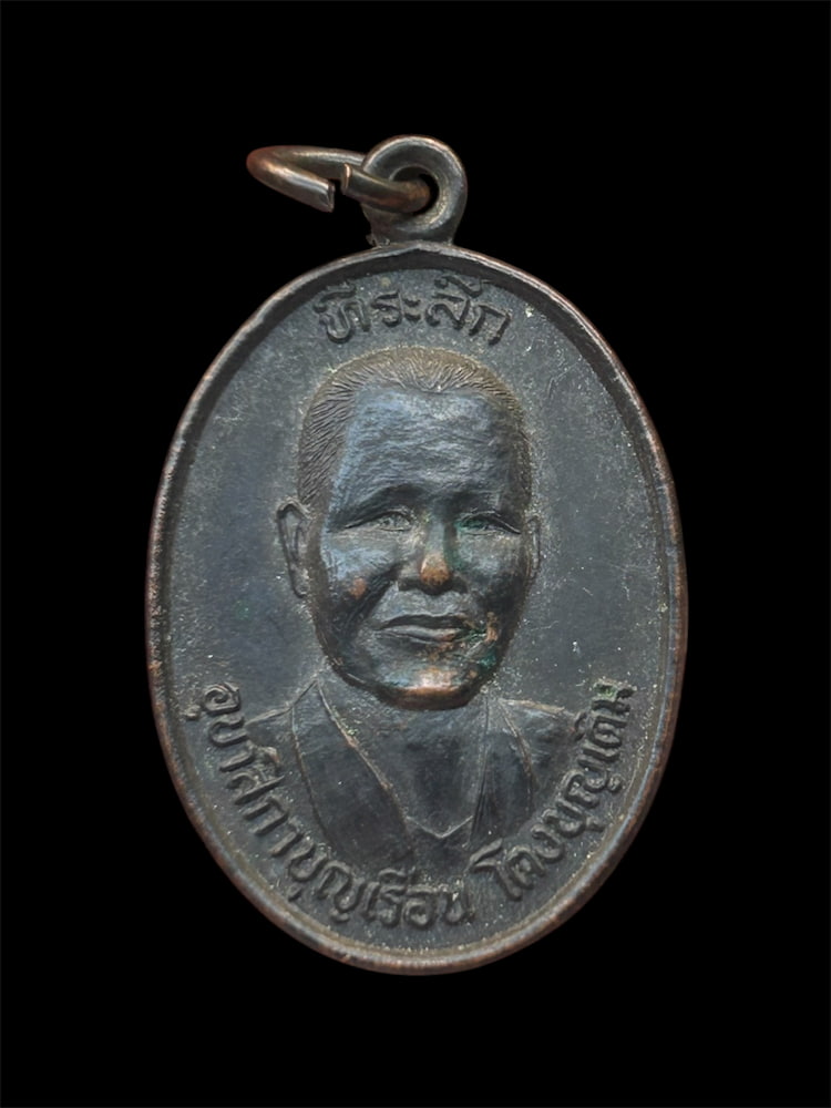 เหรียญลาภผลพูนทวีมั่งมีศรีสุข คุณแม่บุญเรือน วัดอาวุธ จ.กรุงเทพ เนื้อทองแดง |