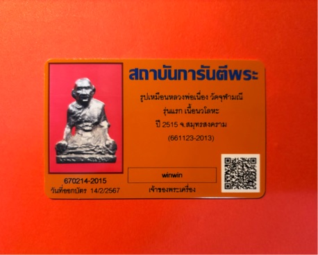 รูปเหมือนหลวงพ่อเนื่อง วัดจุฬามณี รุ่นแรก เนื้อนวโลหะ ปี2515 จ.สมุทรสงคราม ก้นตอกโค๊ด น และมีรอยจารมือหลวงพ่อ พร้อมบัตรรับรองครับ