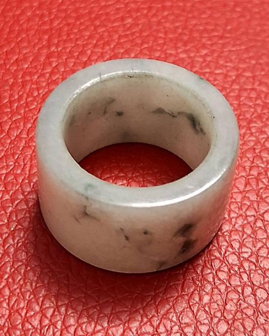 แหวนหยกทรงท่อ หยกพม่าแท้ 100 % (แสงส่องผ่าน) สีเขียวอ่อน ลวดลายธรรมชาติ สวยมากๆ เส้นผ่าศูนย์กลาง 1.9 ซม. หนา 1.4 ซม. หายาก (กท.16)