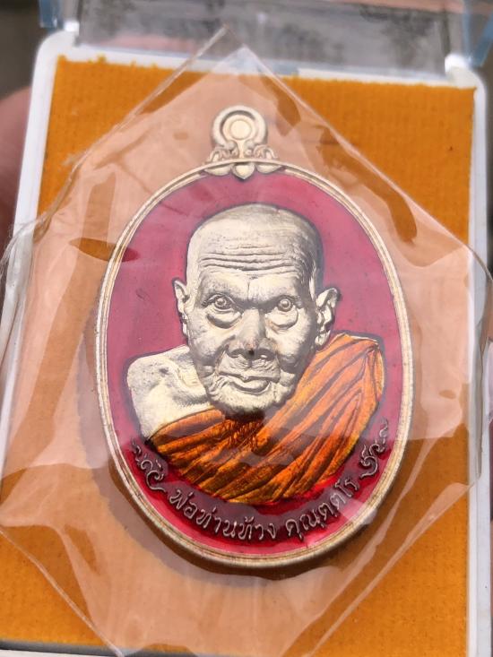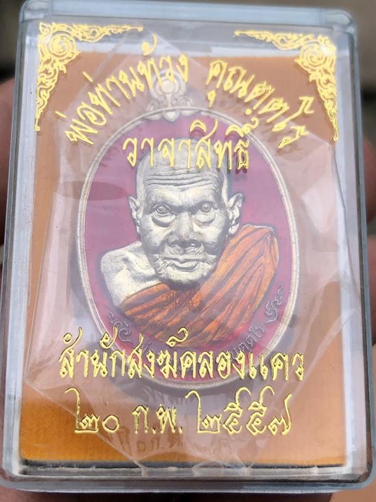 เหรียญวาจาสิทธิ์ พ่อท่านท้วง สำนักสงฆ์คลองแคว จ.นครศรีธรรมราช ปี 2557 เนื้อผิวประกายเงินลงยาแดง