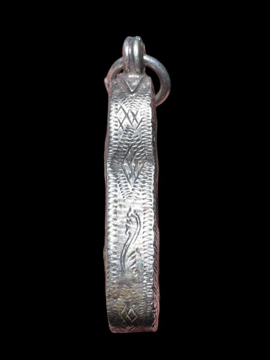 แบ่งปันกรอบเงินแท้ กรอบเงินแท้ (มือสอง) ใส่จอบหลวงพ่อเงิน งานขึ้นมือ แกะมือลายสวย มีแผ่นหลัง (ขนาด 2.7 x 1.3. ซม ) สวยๆ ทำใหม่แพงกว่านี้หลายเท่าครับ |
