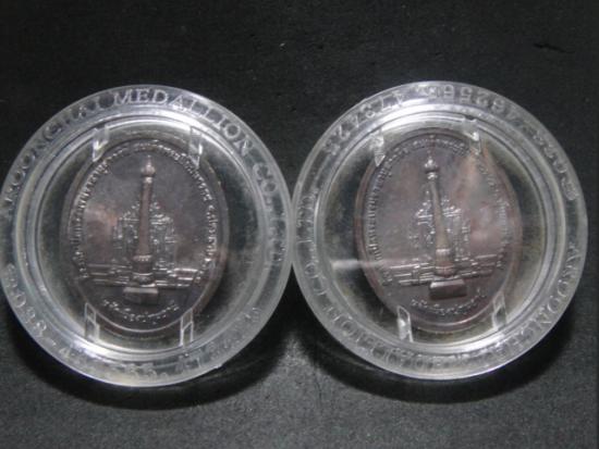วัดใจเคาะเดียว.......120.......เหรียญ รัชกาลที่5 ร.๕ หลักเมืองปทุมธานี จังหวัดปทุมธานีสร้างปี 2549 ที่ระลึกพิธีเปิดพระบรมราชานุสาวรีย์ รวม 2 เหรียญ สวยคาตลับเดิม