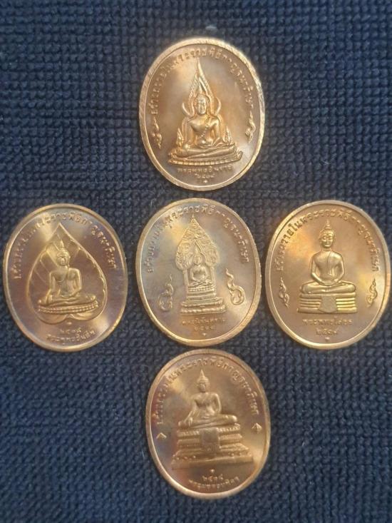 พระเหรียญชุดพระพุทธปัญจภาคี ครบชุด 5 เหรียญ ที่ระลึกพระราชพิธีกาญจนาภิเษก ในหลวงรัชกาลที่ 9 หลังหลวงโสธร, หลังพระพุทธชินราช, หลังพระพุทธชินสีห์, หลังพระมงคลบพิตร, หลังพระนิรันตราย ปี พ.ศ.2539 ซองเดิม
