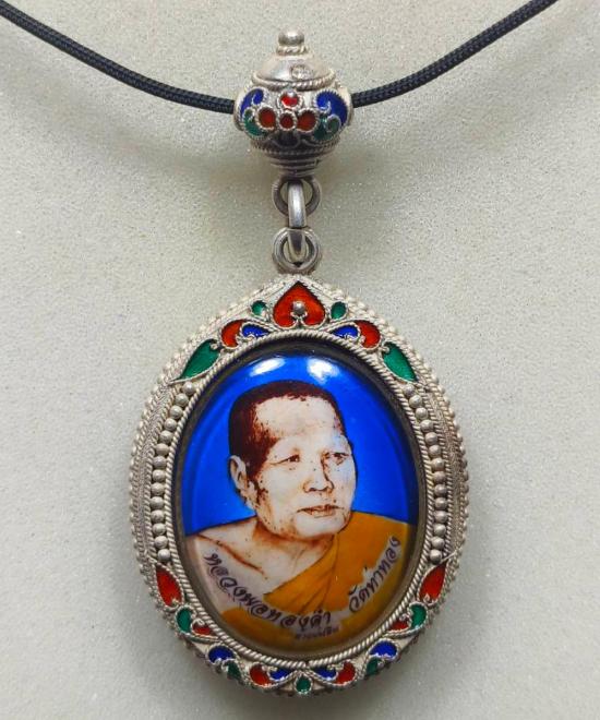 ล็อกเก็ต รุ่นห้าแผ่นดิน หลวงปู่ทองดำ วัดท่าทอง จ.อุตรดิตถ์ รุ่นแรก วัดจัดสร้าง ปี2540 เลี่ยมเงินกันน้ำ + หัวขุนเงินลงยา แดงเคาะแรก