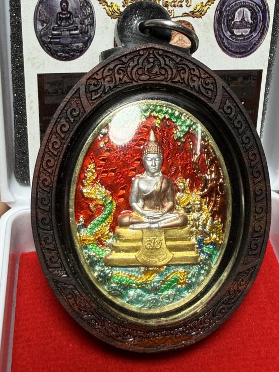 ((วัดสร้าง))เหรียญหลวงพ่อโสธรรุ่นประวัติศาสตร์ครบรอบ 255 ปี วาระพิเศษ เนื้อนวะโลหะ 9 ชนิด ชุบน้ำทองคำลงยามาสเตอร์พีชแดงหน้ากากเงินแท้ ชุบสามกษัตริย์ เลี่ยมกรอบไม้มงคล เดิมจากวัด โค้ตเลข 86 พร้อมกล่องเดิม