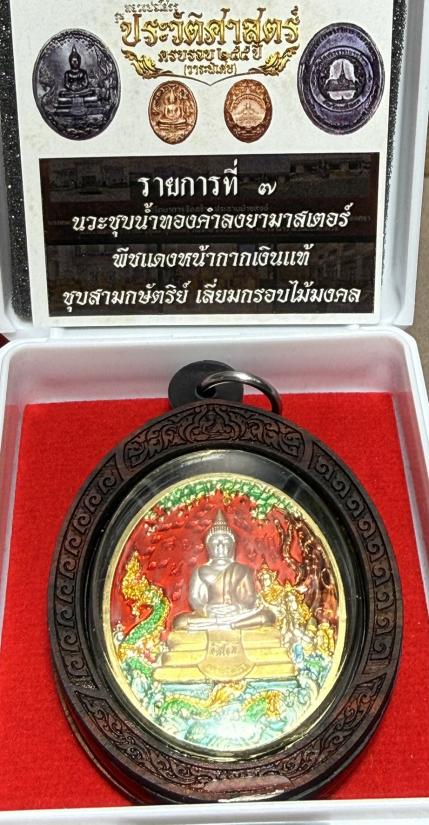 รายละเอียด ((วัดสร้าง))เหรียญหลวงพ่อโสธรรุ่นประวัติศาสตร์ครบรอบ 255 ปี วาระพิเศษ เนื้อนวะโลหะ 9 ชนิด ชุบน้ำทองคำลงยามาสเตอร์พีชแดงหน้ากากเงินแท้ ชุบสามกษัตริย์ เลี่ยมกรอบไม้มงคล เดิมจากวัด โค้ตเลข 86 พร้อมกล่องเดิม