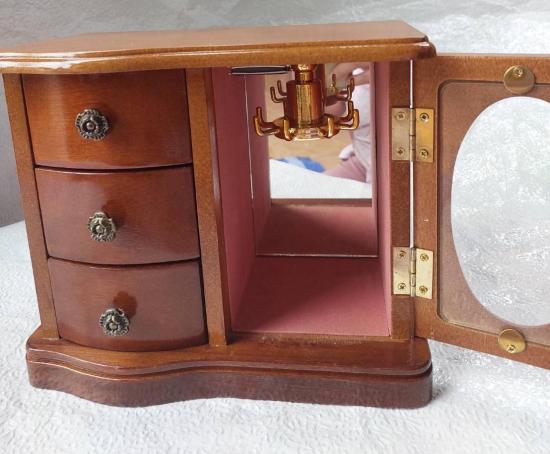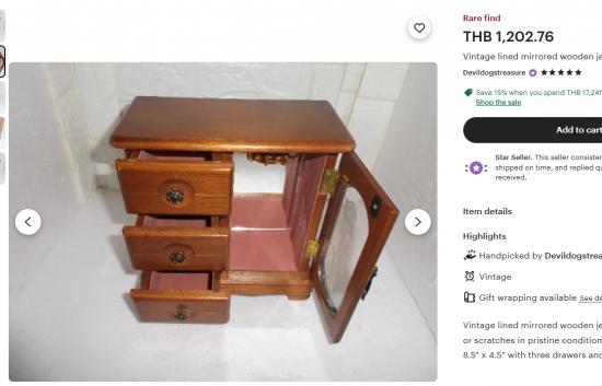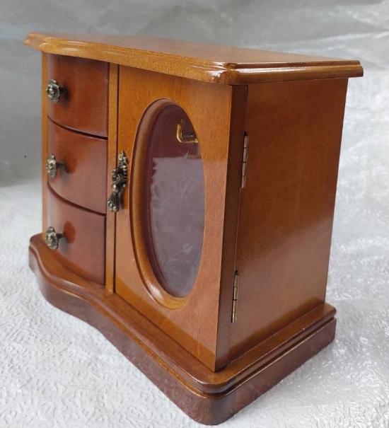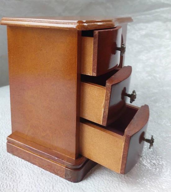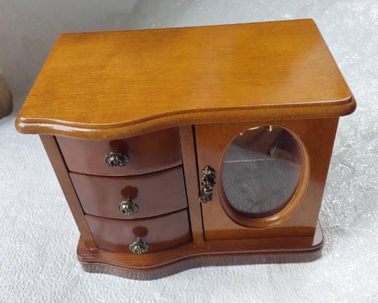 ตู้เครื่องประดับ ขนาดเล็ก เนื้อไม้วินเทจญี่ปุ่น งานฝีมือเก่า 3 ลิ้นชัก 1 บานเปิด ขนาด กว้าง 22 ลึก 12 สูง 18 CM. |