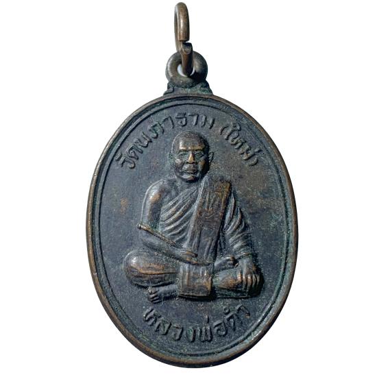 (เคาะเดียว!) เหรียญแจกทาน หลวงพ่อดำ วัดใหม่นภาราม จ.นราธิวาส ปี 2537 หลังพระปิดตา (เนื้อทองแดง) |
