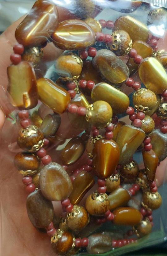 สร้อยคอเก่าญี่ปุ่น หินผสมลูกปัดไม้ ยาวๆ 42 นิ้ว สวยๆ |