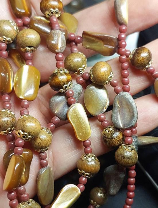 สร้อยคอเก่าญี่ปุ่น หินผสมลูกปัดไม้ ยาวๆ 42 นิ้ว สวยๆ