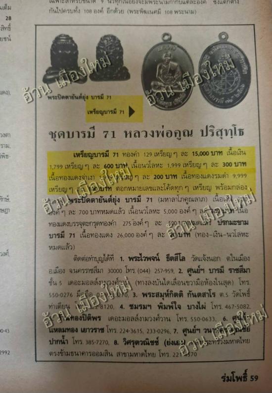-วัตถุประสงค์ : เพื่อนำรายได้จากการเช่าวัตถุมงคลนำไปจัดตั้งเป็นกองทุนอเนกประสงค์ของวัดแจ้งนอก และเพื่อร่วมฉลองอายุ 71 ปี ของ หลวงพ่อคูณ ปริสุทฺโธ ในวันเกิด วันที่ 4 ตุลาคม พ.ศ.2536