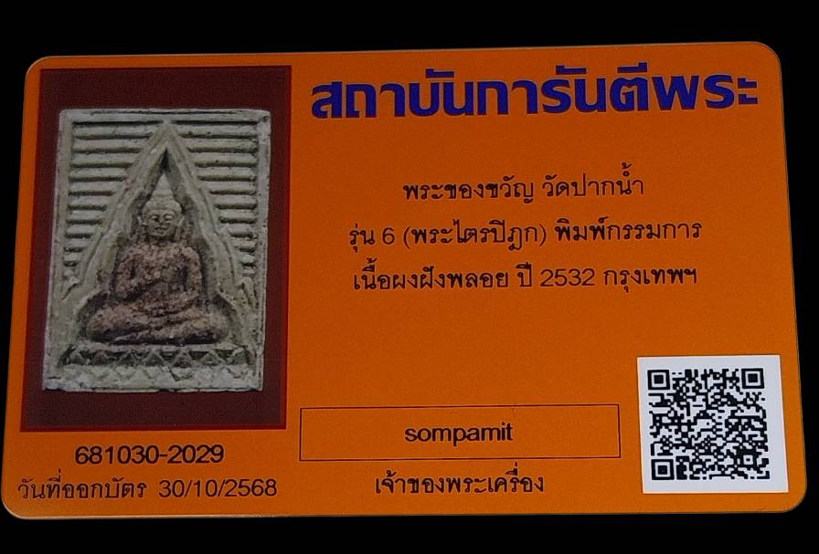 พระของขวัญวัดปากน้ำรุ่น6 พิมพ์กรรมการเนื้อผงฝังพลอย ปี2532 สร้างน้อยมีพบเห็นน้อนมาก มีใบรับประกันพระแท้จากเวปgสบายใจได้ |