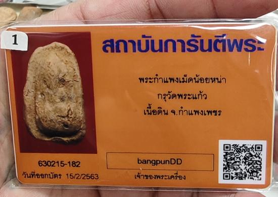 พระนางกำแพง เม็ดน้อยหน่า กรุวัดพระแก้ว กำแพงเพชรพร้อมบัตรการันตีพระเครื่อง 1 ใบ
