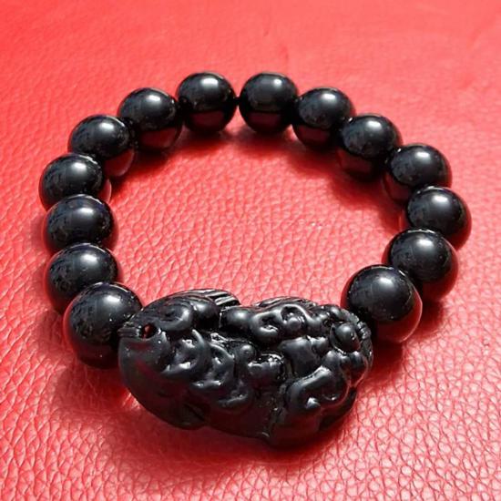 สร้อยประคำข้อมือปี่เซี๊ยะนิลดำ ประคำขนาด 12 มิล ปี่เซี๊ยะขนาด 3.5 ซม. (กท.17) |