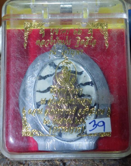 เหรียญเจริญพรบูชาครู ๖๒ หลวงปู่หมุน ฐิตสีโล เนื้อตะกั่วไม่ตัดปีกลงยา เลข 39 วัดบ้านจาน ปี 2562 |