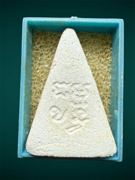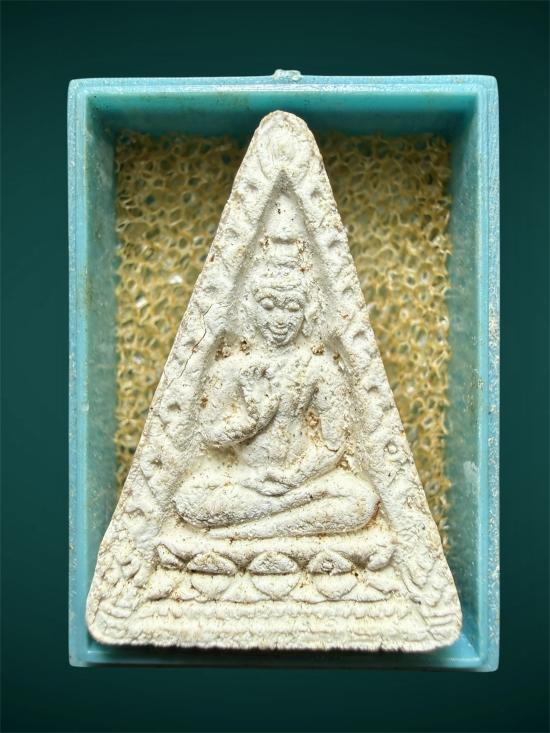 พระผงธรรมขันธ์ วัดปากน้ำรุ่น 4 พิมพ์สามเหลี่ยม หน้านาง นิยมหน้ายิ้มมือจุด |