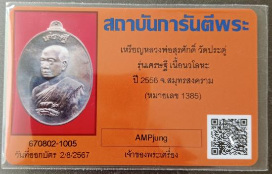 พระมหาสุรศักดิ์ วัดประดู่ฯ สุมทรสงคราม เหรียญหันข้าง " เศรษฐีอัมพวา " เนื้อนวะโลหะ No.๑๓๘๕ กล่องเดิม พร้อมบัตรรับรอง