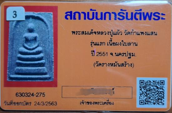 1500 พระสมเด็จหลวงปู่แผ้ว วัดกำแพงแสน รุ่นแรก เนื้อผงใบลาน ปี 2551 จ.นครปฐม. (วัดรางหมันสร้าง) |
