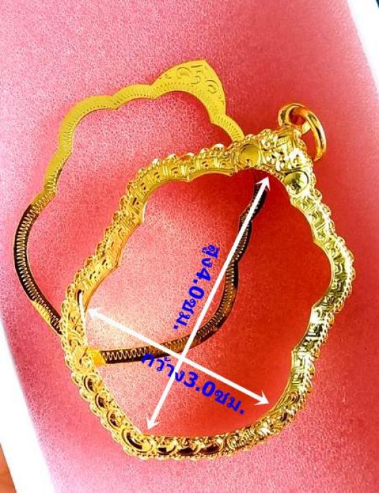 กรอบทองคำแท้ยกซุ้มบน-ซุ้มล่าง-ตีเกียวโปเต้ ใส่เหรียญเสมาแปดรอบหลวงปู่ทิม/หลวงพ่อคูณ/หลวงพ่อสาคร/หลวงพ่อรวย//เกจิอื่นๆจอใน3+4ซม..น้ำหนัก 5.46 กรัม |