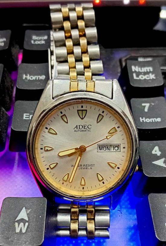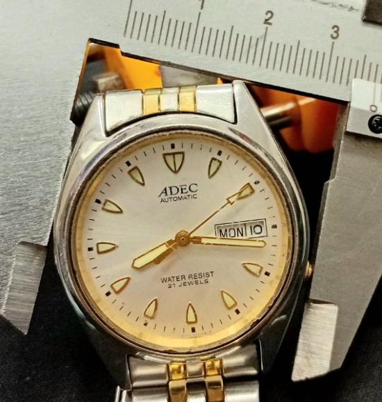 วินเทจ ADEC สองกษัตริย์ Automatic 21 jewels 37 mm. โดยประมาณ เดินปกติพร้อมใช้ วันที่เปลี่ยนปกติ สาย21ข้อยาวๆครับ |