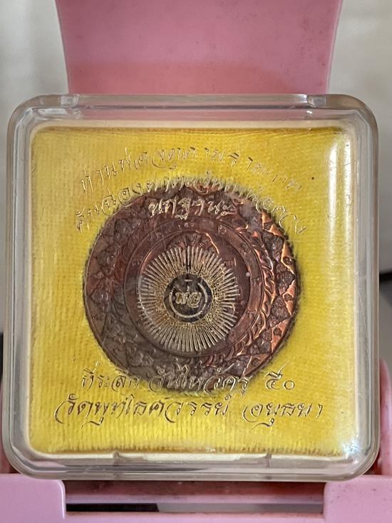เหรียคันฉ่อง ผ่าตะวันเหนือดวง วัดพุทไธศวรรย์ เนื้อทองแดง 3.2ซม.ปี2550 พร้อมกล่อง