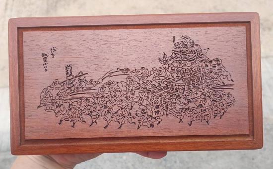 ***วัดใจ***กล่องไม้แกะสลักที่แสดงภาพเทศกาลประจำปีที่มีชื่อเสียงของเมืองฟุกุโอกะ ประเทศญี่ปุ่น เก่าสะสมสามารถใส่อุปกรณ์พระเครื่อง