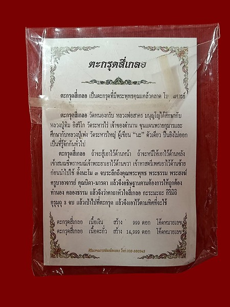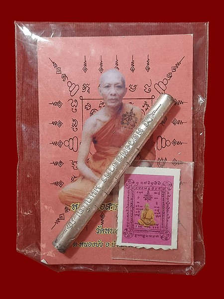 ตะกรุดสี่เกลอเนื้อเงินอุดเทียนชัย หลวงพ่อสาคร เบอร์ 577 กระดาษเดิมซองเดิมจากวัดพร้อมรูปแสตมป์ ขนาดยาว 3 นิ้ว |