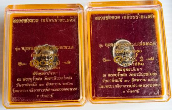 เคาะเดียวแดง.....เหรียญเม็ดแตงหลวงพ่อทวด รุ่นพุทธคุณหลวงพ่อทวดเรือสำเภาทอง 105 ปีอาจารย์ทิม วัดตานีนรสโมสร ปี 60 เนื้อทองขาวนอกโบราณ จำนวน 2 เหรียญพร้อมกล่องเดิม |