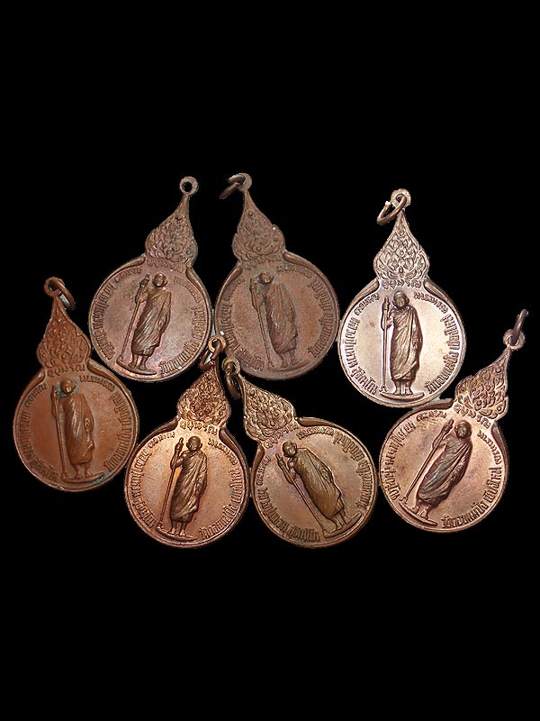 ###### เหรียญยืน หลวงปู่แหวน สุจิณโณ หลังภปร. ปี 2519 เนื้อทองแดง ยกชุด 7 องค์ สวยเดิม ######